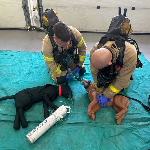 In 2020, Cheshire Fire & Rescue Service Watch Manager Nic Brennan, now based at Widnes Fire Station, began working on an idea close to his heart. Following a house fire in which a pet tragically died, Nic recognised a gap in emergency response: while firefighters were trained to rescue large animals and carried animal oxygen masks provided by a wonderful not-for-profit Smokey Paws and donations from the public, no training existed on how to use these masks and also how to give pets immediate first aid at the scene.